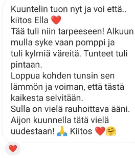 Olen ikuisesti kiitollinen sisäisestä tarpeesta parantua/löytää terveys ja pysähtyä kuulemaan kivun viestejä, niiden ansiosta olen päässyt polulleni. Siispä uskon, että kenenkään sisäiset tarpeet eivät ole turhia tai vääriä. Samalla ne ovat niitä, joita haluaisimme eniten suojella, jotta ei tulisi loukatuksi itselle tärkeimmän asian takia. On helppo keksiä harhautustarinoita ja erilaisia ulkokuoria tilanteisiin.